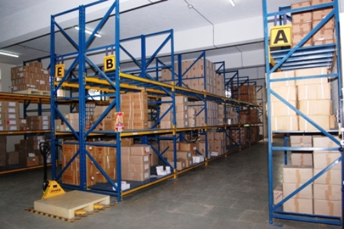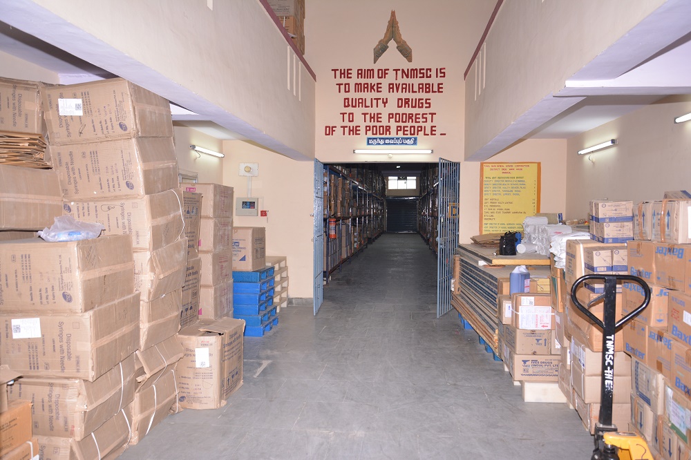 கிடங்குகள் போதுமான சேமிப்பு இடவசதியைக் கொண்டுள்ளன, இடவசதி வீணாவதைத் தவிர்ப்பதற்காக கனரக ரேக்கிங் அமைப்புடன், பேலெட்டுகள், ஹைட்ராலிக் முறையில் இயக்கப்படும் கை தள்ளுவண்டிகள் மற்றும் பாதசாரிகள் கட்டுப்படுத்தப்பட்ட மின்சார அடுக்கி மருந்துகள் மற்றும் மருந்துகளை விஞ்ஞான ரீதியாகவும் திறம்படவும் கையாளுகின்றன.